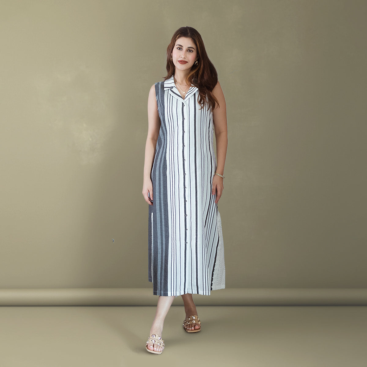 Our Monochrome Muse Dress is super light, breathable and gives you all the perfect summery vibes that you're looking for....
