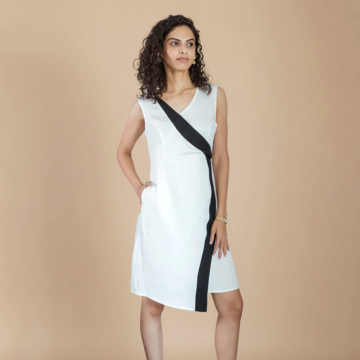 Our Monochrome Twirl Dress is super light, has pockets, and flows with your body.
