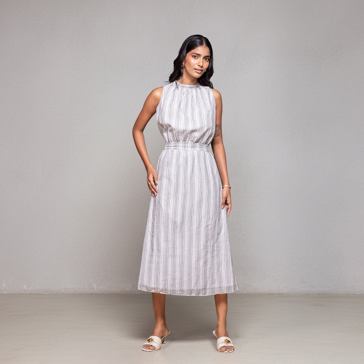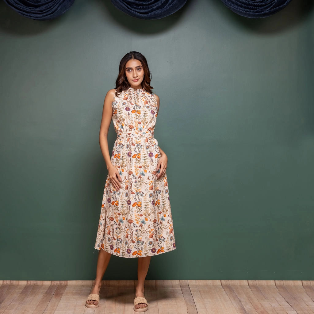Our Puff Luna midi dress feels impossibly soft, light and effortless—made for days when you want comfort without losing shape. The high neck adds an elegant, clean finish, while the fitted waist band creates gentle definition without gripping. Crafted in breathable cotton with a smooth inner lining, it moves easily with you and feels comfortable from morning to night. A simple back button closure completes the look with quiet sophistication.