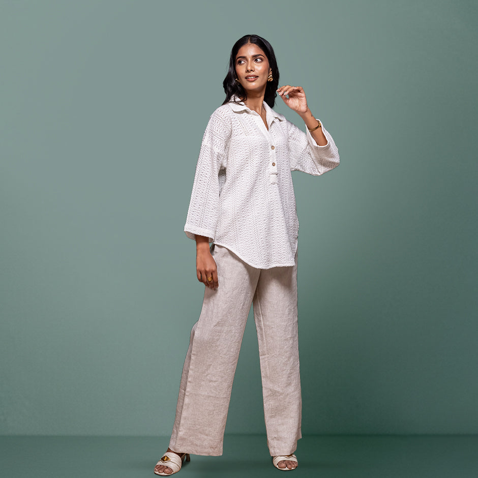 A long crochet shirt that’s soft, comfy, and effortlessly stylish. Perfect for winter days, whether you’re heading to the office or layering up for a cozy outing. Comes in three versatile variants: blue, green, and white.